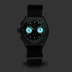 Utilizing an ultra-tough & super light 38mm titanium case, the Destro is powered by a SII VK64 Mecaquartz chronograph movement. Use the precisely graduated markings on the reverse panda dial to count off heart and respiratory rates within a matter of seconds. When activating the chronograph, we’d recommend counting using 30-second intervals for higher accuracy.