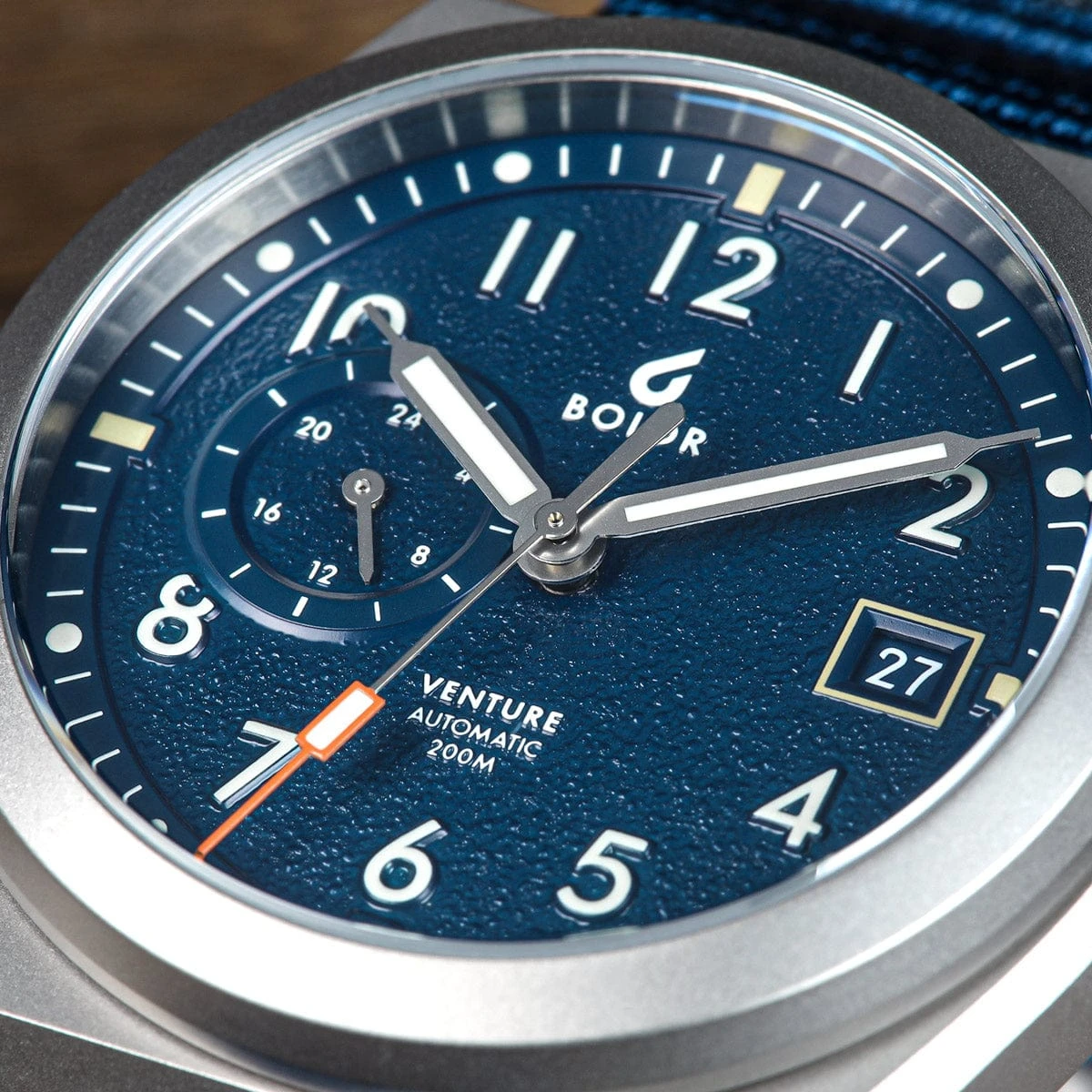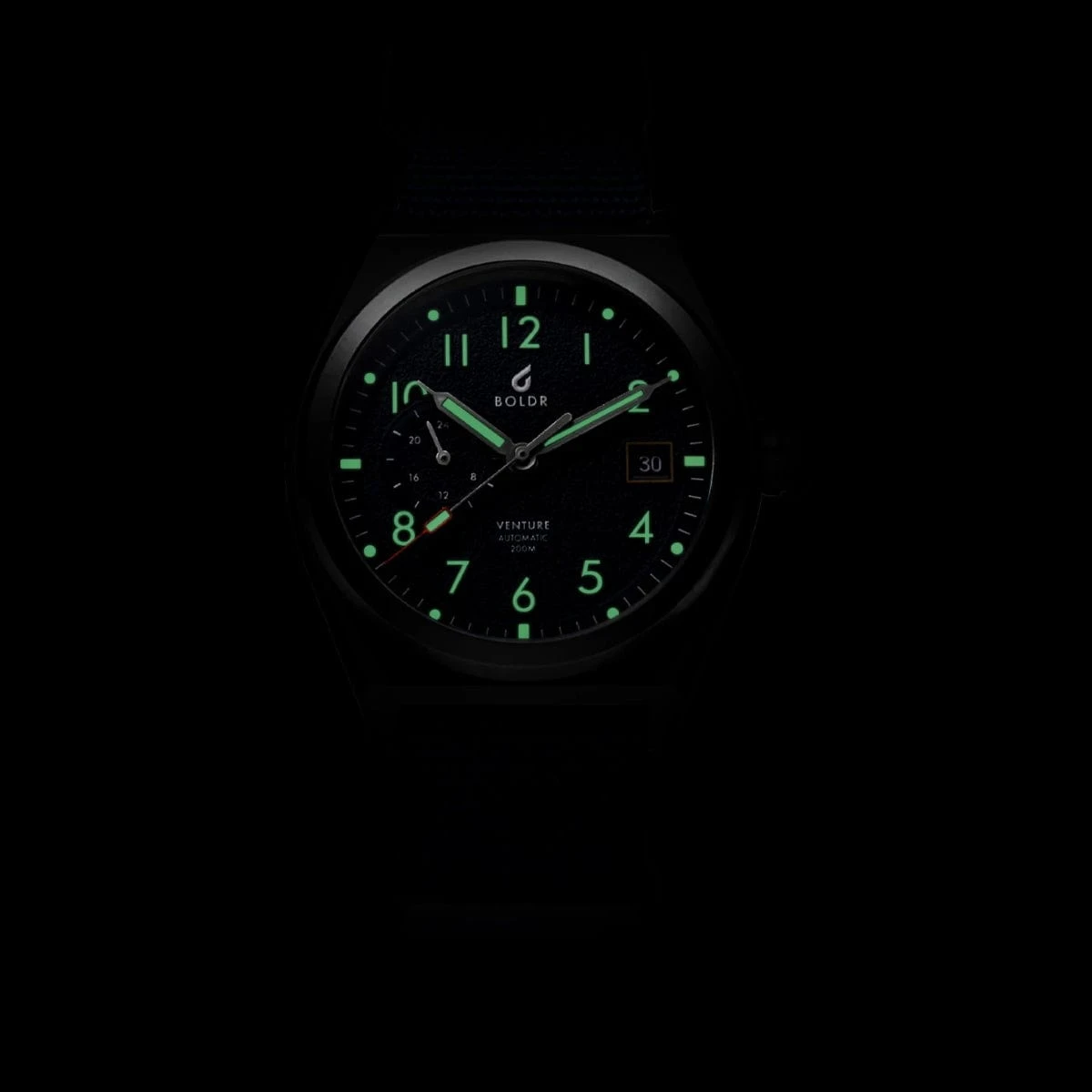 Boldr have used a Miyota 8217 movement in the Venture Wayfarer. This reliable Japanese automatic calibre has 21 jewels, a decent 42 hour power reserve, and beats at 21,600 bph. The movement is accurate to -20/+40 seconds per day.