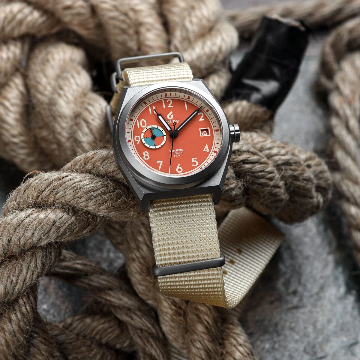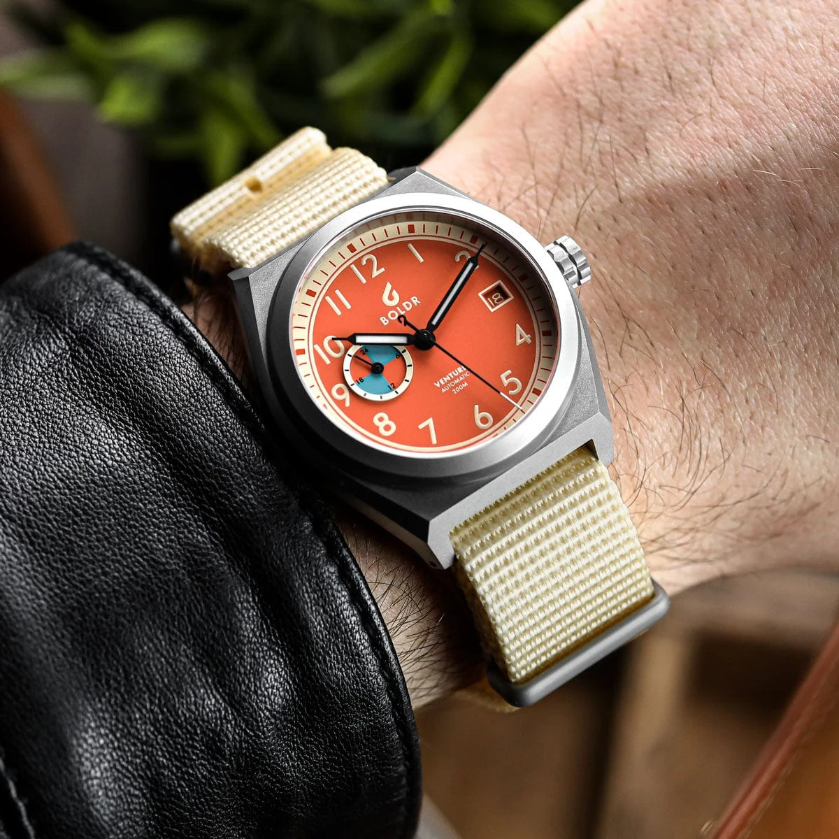 Boldr have used a Miyota 8217 movement in the Venture Wayfarer. This reliable Japanese automatic calibre has 21 jewels, a decent 42 hour power reserve, and beats at 21,600 bph. The movement is accurate to -20/+40 seconds per day.