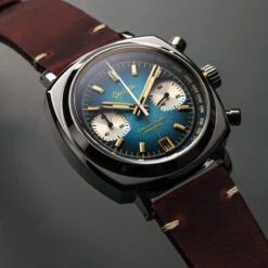 First introduced in the 70’s, the fumé dial adds a unique touch to the Chronotimer collection and gives it a distinct and sophisticated appearance with gradual fading from dark to light introducing depth and dimension-changing appearance at every angle. Boasting bold applied indices optimal visibility under any condition is guaranteed with this timepiece. The double dome sapphire crystal provides added durability and scratch resistance, while the fully polished 316L stainless steel case gives it a sleek, high-end look. The chronograph function and retro styling make it an ideal choice for those who appreciate both classic and modern design elements in a watch.