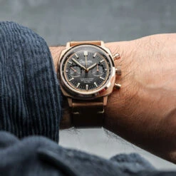 Completing the design is a custom-made, top-quality leather strap, offering both comfort and durability. The strap’s fine craftsmanship perfectly complements the watch, ensuring it looks as good on casual days as it does when dressed up for formal occasions.