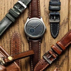 The Vintage Highley uses certified vegetable-tanned, full-grain Italian leather produced by a member of the Consorzio Vera Pelle Italiana Conciata Al Vegetale. This consortium of tanneries in Tuscany exclusively uses natural plant-derived tannins and centuries-old techniques to create quality controlled sustainable leathers. As a result, this strap will continue to develop patina and only get better as it wears in and begins to age. We guarantee that we use certified leathers from these tanneries, and to read more about these certified responsible Italian tanneries click here.