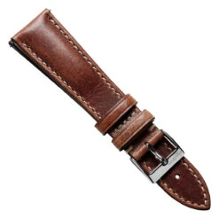 The Vintage Highley uses certified vegetable-tanned, full-grain Italian leather produced by a member of the Consorzio Vera Pelle Italiana Conciata Al Vegetale. This consortium of tanneries in Tuscany exclusively uses natural plant-derived tannins and centuries-old techniques to create quality controlled sustainable leathers. As a result, this strap will continue to develop patina and only get better as it wears in and begins to age. We guarantee that we use certified leathers from these tanneries, and to read more about these certified responsible Italian tanneries click here.