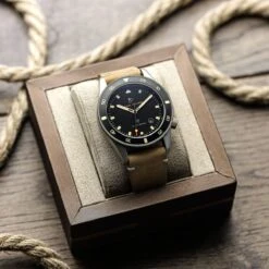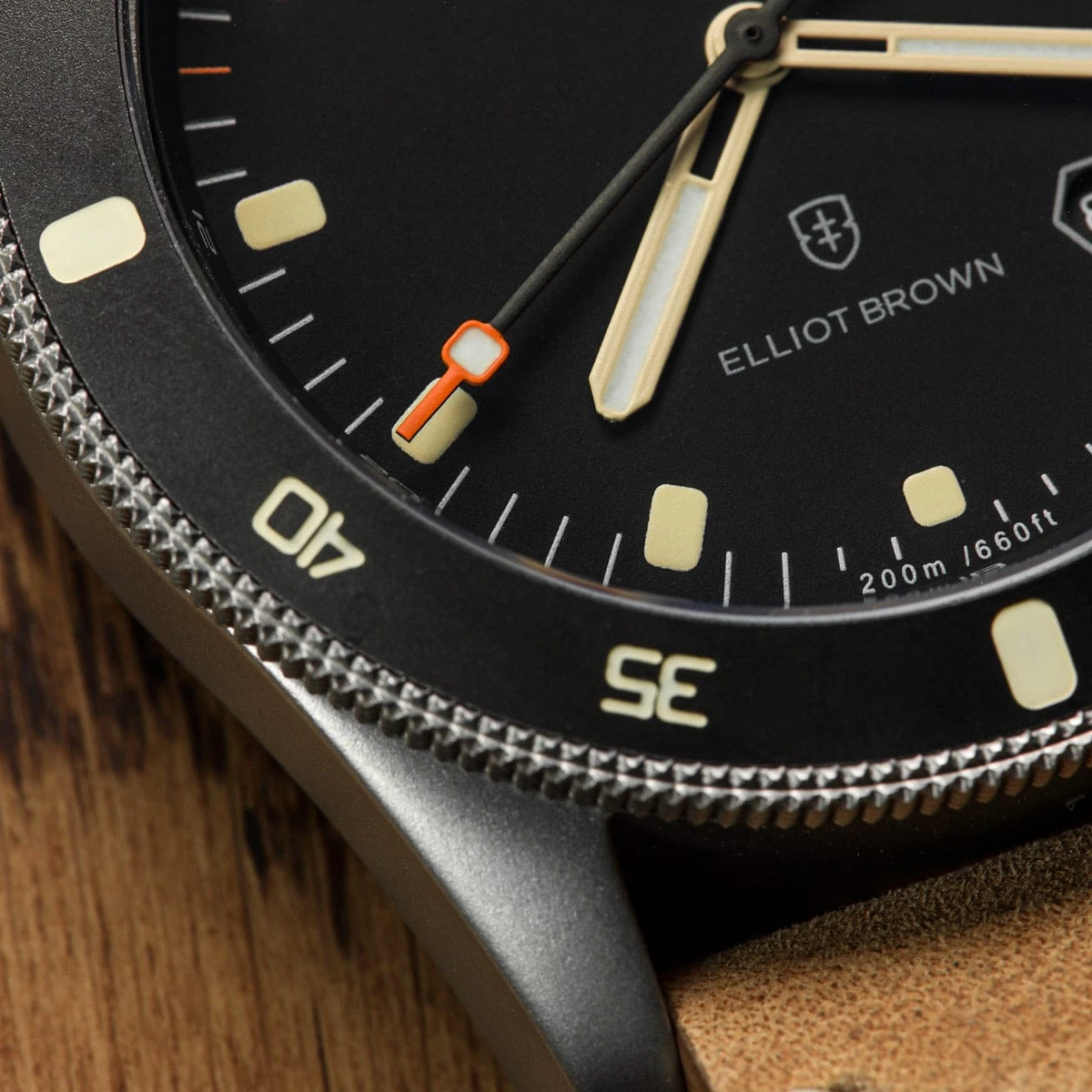 Functional elements include a 120-click unidirectional bezel with tactile hobnail knurling hardened to 1200HV Vickers, a triple-sealed screw down crown at 4H, tough 2mm anti-reflective sapphire crystal and solid screw in strap bars for easy strap changes.Â