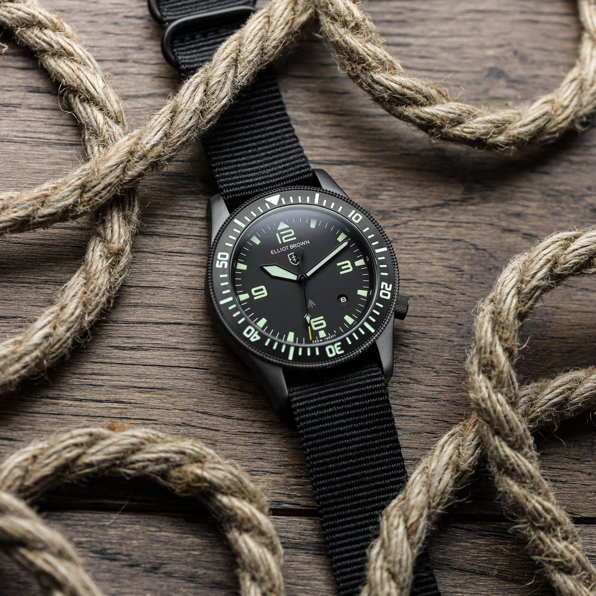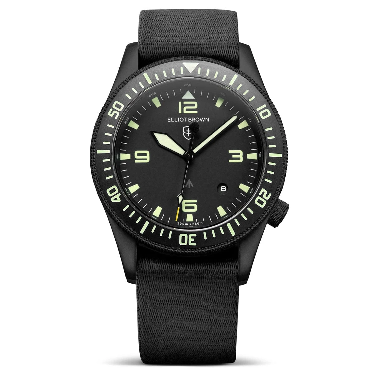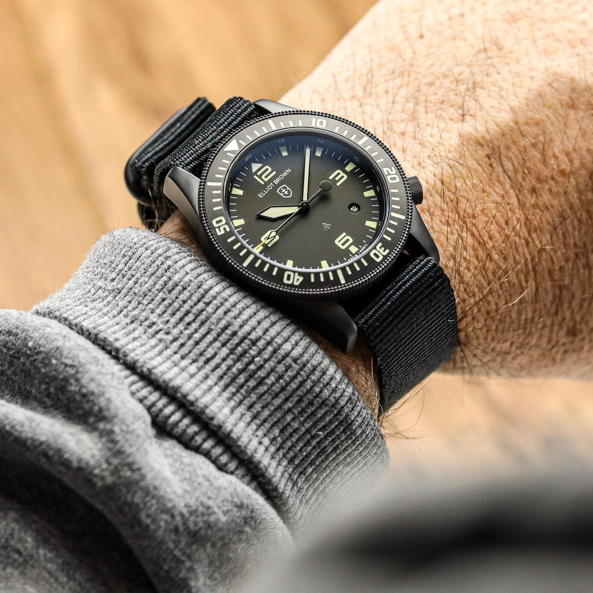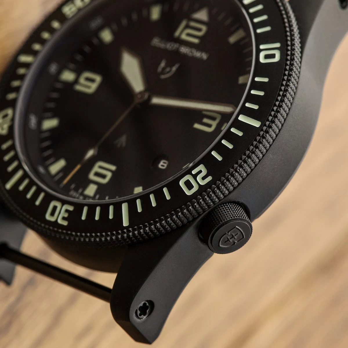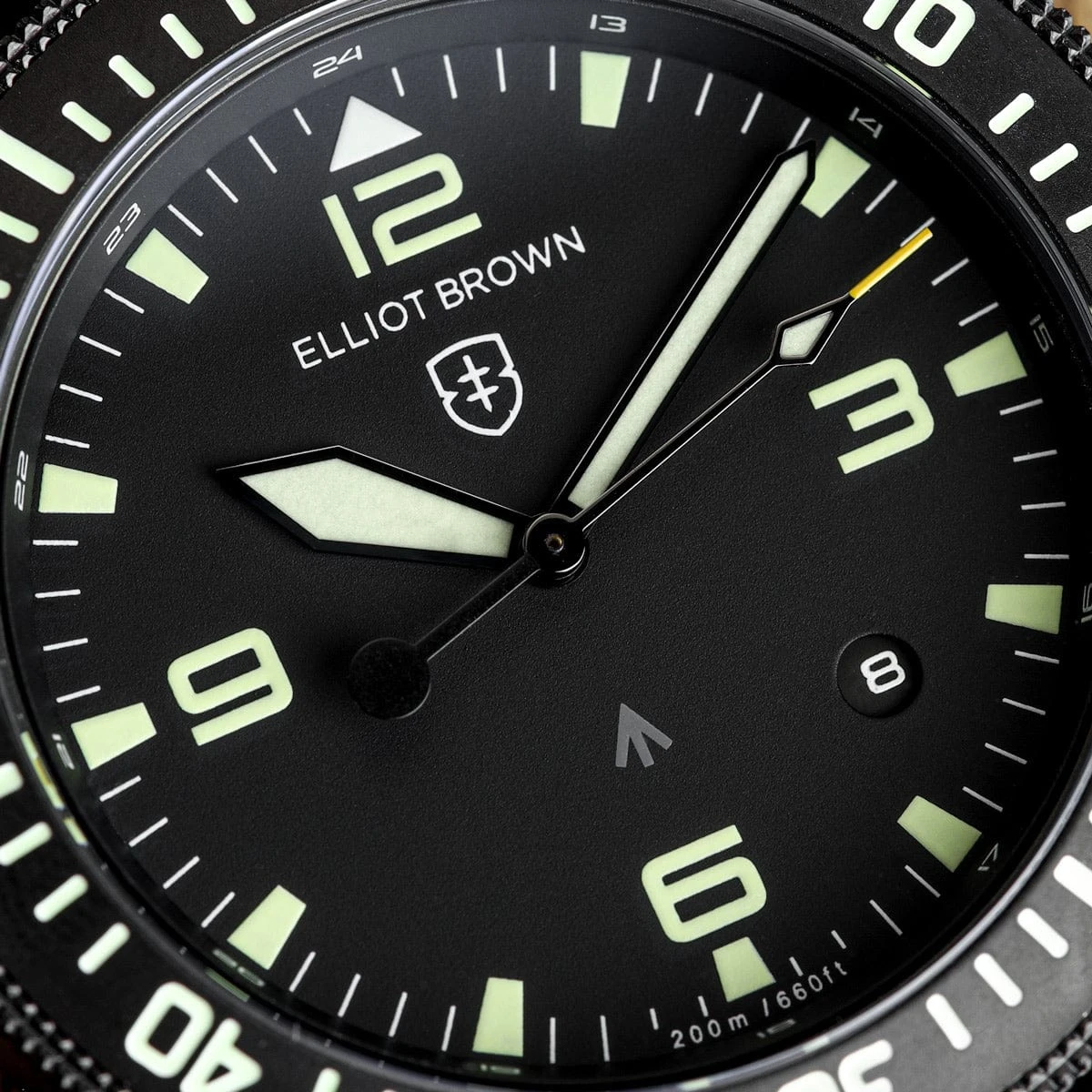 The Holton came about as a natural consequence of Canford watches being worn by members of the military, when one unit requested an Elliot Brown watch of professional calibre with some very specific functional requirements. The design is inspired by vintage military watches modernised with all the hallmark Elliot Brown house design cues, putting supreme legibility and function at the forefront.