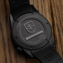 The dial and bezel are supremely legible in low-light conditions thanks to the ultra-bright and long-lasting C3 SuperLuminova coating. The Holton Professional is powered by the Swiss Ronda calibre 715 with a low-battery/end-of-life indicator that prevents the watch from being issued with a low battery. It is housed inside a proprietary shock protection system consisting of a steel housing suspended by elastomer shock absorbers. The projected battery life is approximately 3 years.Â