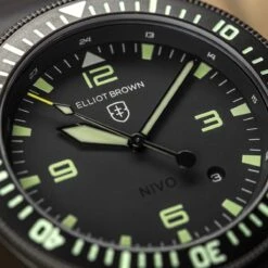 The Holton came about as a natural consequence of Canford watches being worn by members of the military, when one unit requested an Elliot Brown watch of professional calibre with some very specific functional requirements. The design is inspired by vintage military watches modernised with all the hallmark Elliot Brown house design cues, putting supreme legibility and function at the forefront.