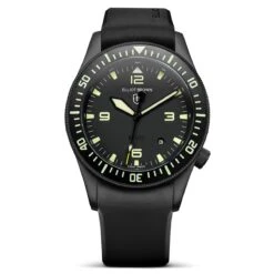 The style is unmistakably utilitarian with a matte vapour blasted finish and a 120-click unidirectional bezel with tactile hobnail knurling hardened to 1200HV Vickers. Functional enhancements include the triple-sealed screw down crown at 4H, tough 2mm anti-reflective sapphire crystal and solid screw in strap bars for easy strap changes. Each watch comes fitted on a durable EPDM rubber strap as standard. This supple, hard-wearing strap remains perfectly soft and durable even in extremes of temperature with no risk of cracking on chilly shouts.