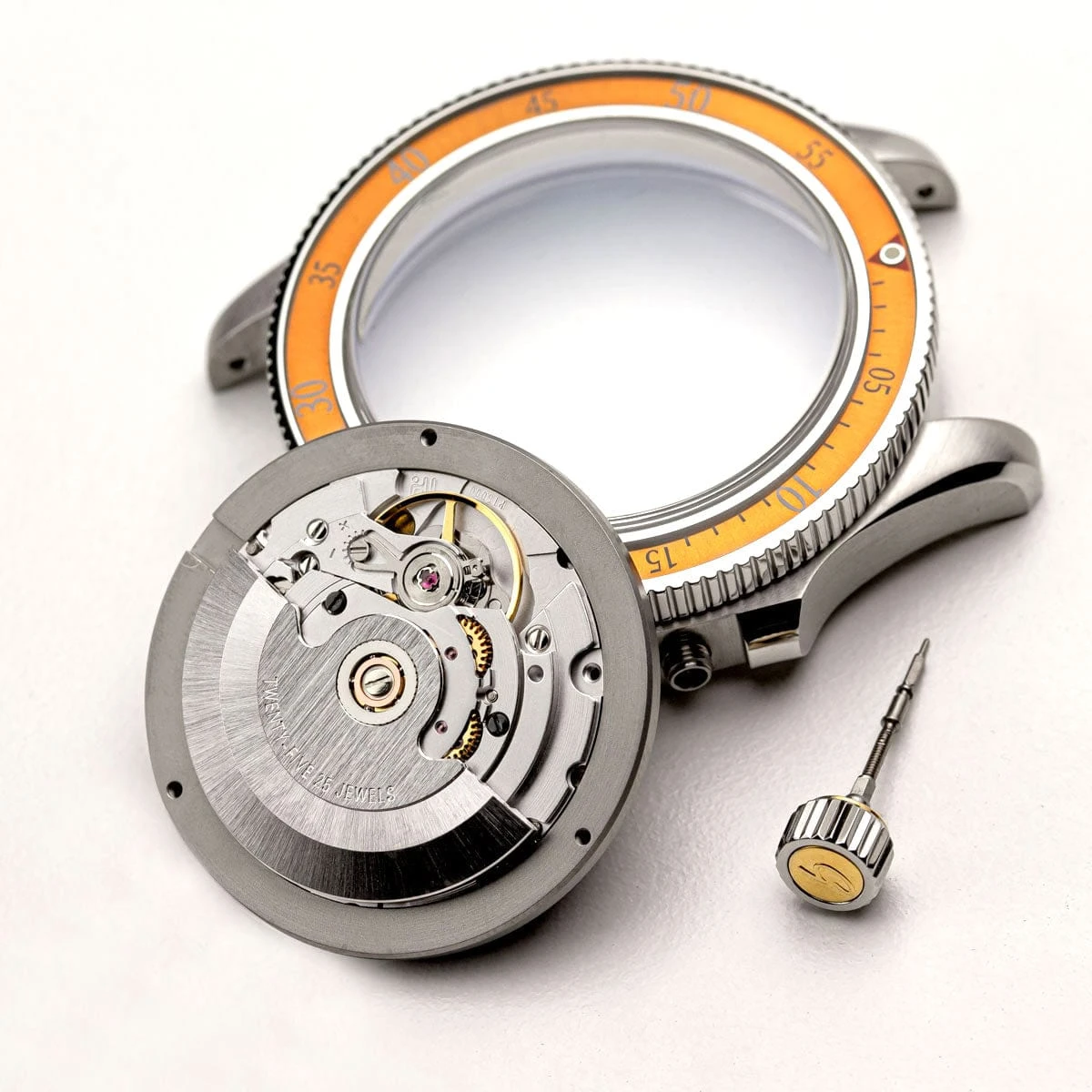 The unique uni-directional 120 click bezel is constructed by the ring being filled with protective transparent epoxy resin, which encases the applied lume pip at 12 o’clock and printed markers set on a sunburst metal ring. The watch is available with the tried and tested PT5000 which is one of several clones of the original and now unavailable ETA 2824 design. We have used these movements for several years now and have very positive feedback in relation to their performance.