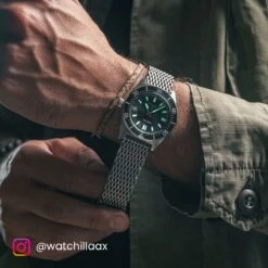 High-Quality Stainless Steel “Shark Mesh” Watch Strap. Stylish and flexible “Ploprof” 316 SHARK mesh strap inspired by the original Omega Seamaster 600m Ploprof mesh.