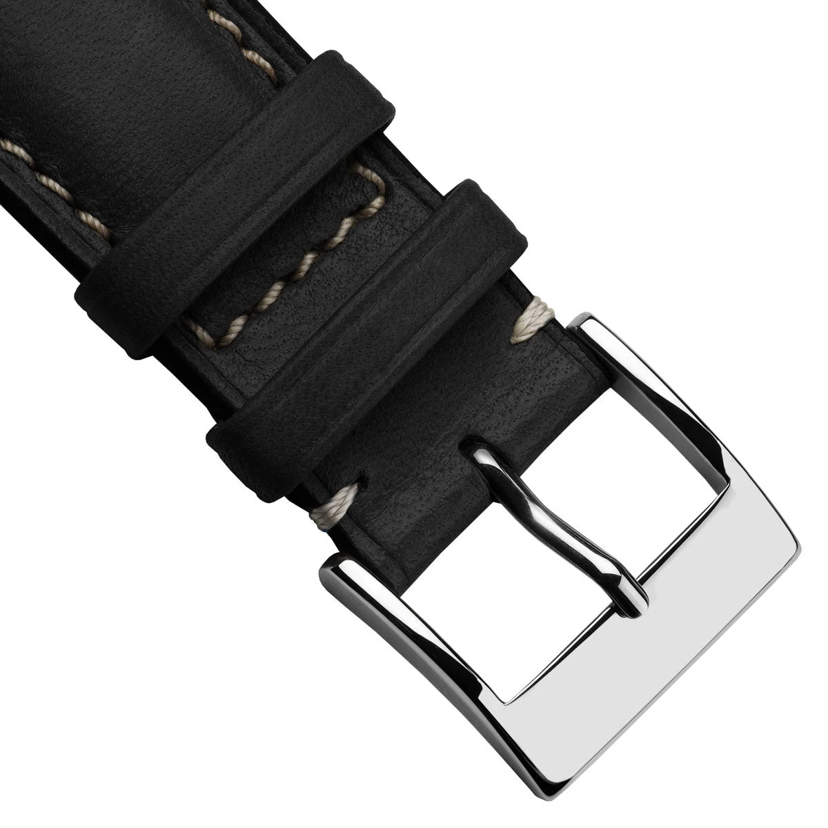 This watch strap is available in several lug widths and features a robust stainless-steel buckle with a highly polished finish.
