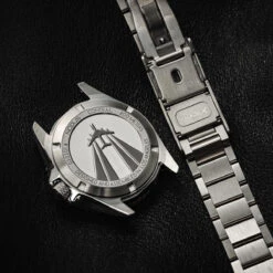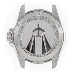 Stamped deeply into the case back is the Contrail’s namesake—the vapour trails left by air travellers around the world and a tribute to the limitless horizons and the interconnectedness of humanity. The Contrail’s design captures the essence of travel and exploration, symbolized by the elegant vapour trails etched on its case back. The bracelet features a NodeX on-the-fly adjustable clasp, facilitating swift and effortless resizing to accommodate changes in body dimensions at varying altitudes. The proprietary NodeX module ensures that finding the perfect fit is as easy as pushing a button.