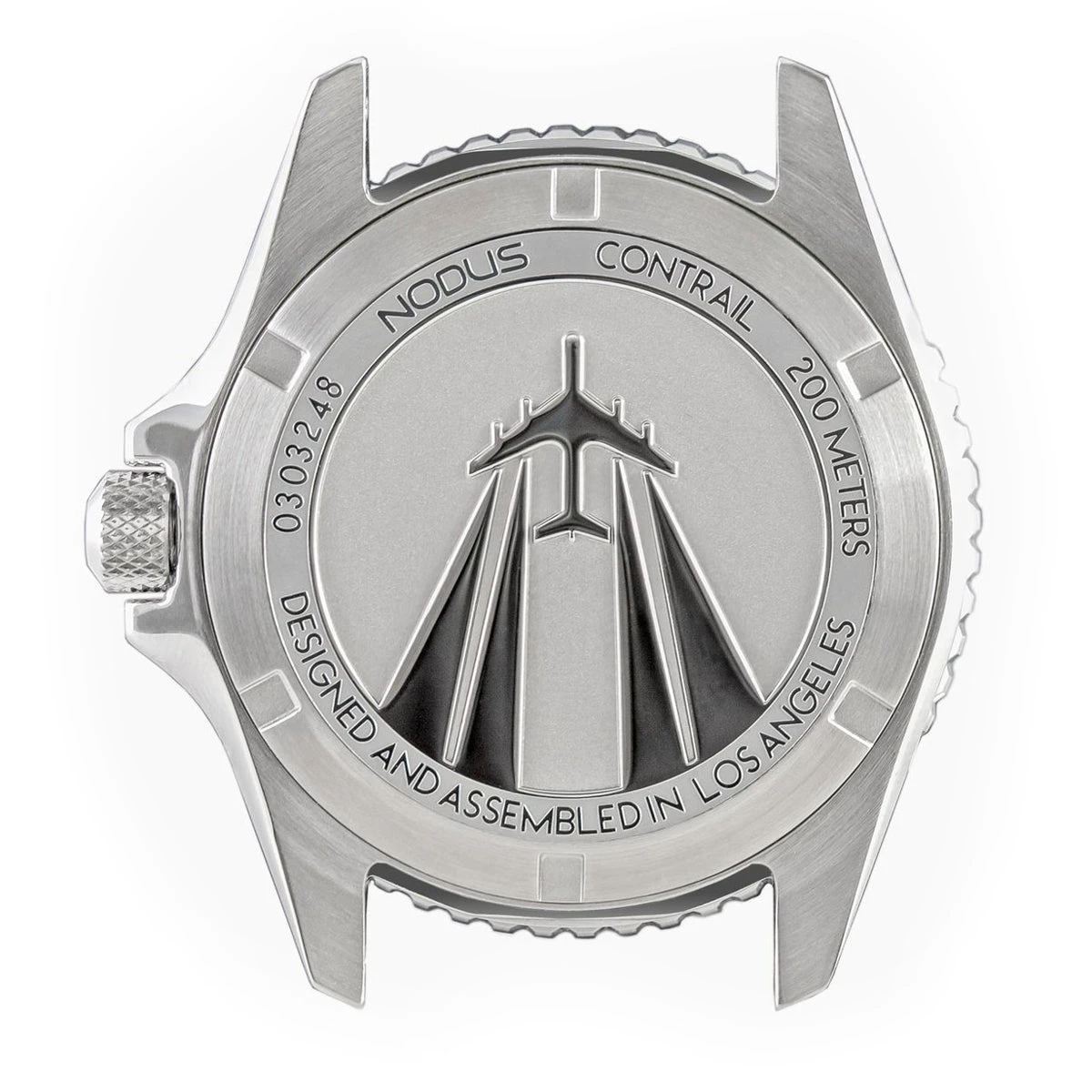 Stamped deeply into the case back is the Contrail’s namesake—the vapour trails left by air travellers around the world and a tribute to the limitless horizons and the interconnectedness of humanity. The Contrail’s design captures the essence of travel and exploration, symbolized by the elegant vapour trails etched on its case back. The bracelet features a NodeX on-the-fly adjustable clasp, facilitating swift and effortless resizing to accommodate changes in body dimensions at varying altitudes. The proprietary NodeX module ensures that finding the perfect fit is as easy as pushing a button.