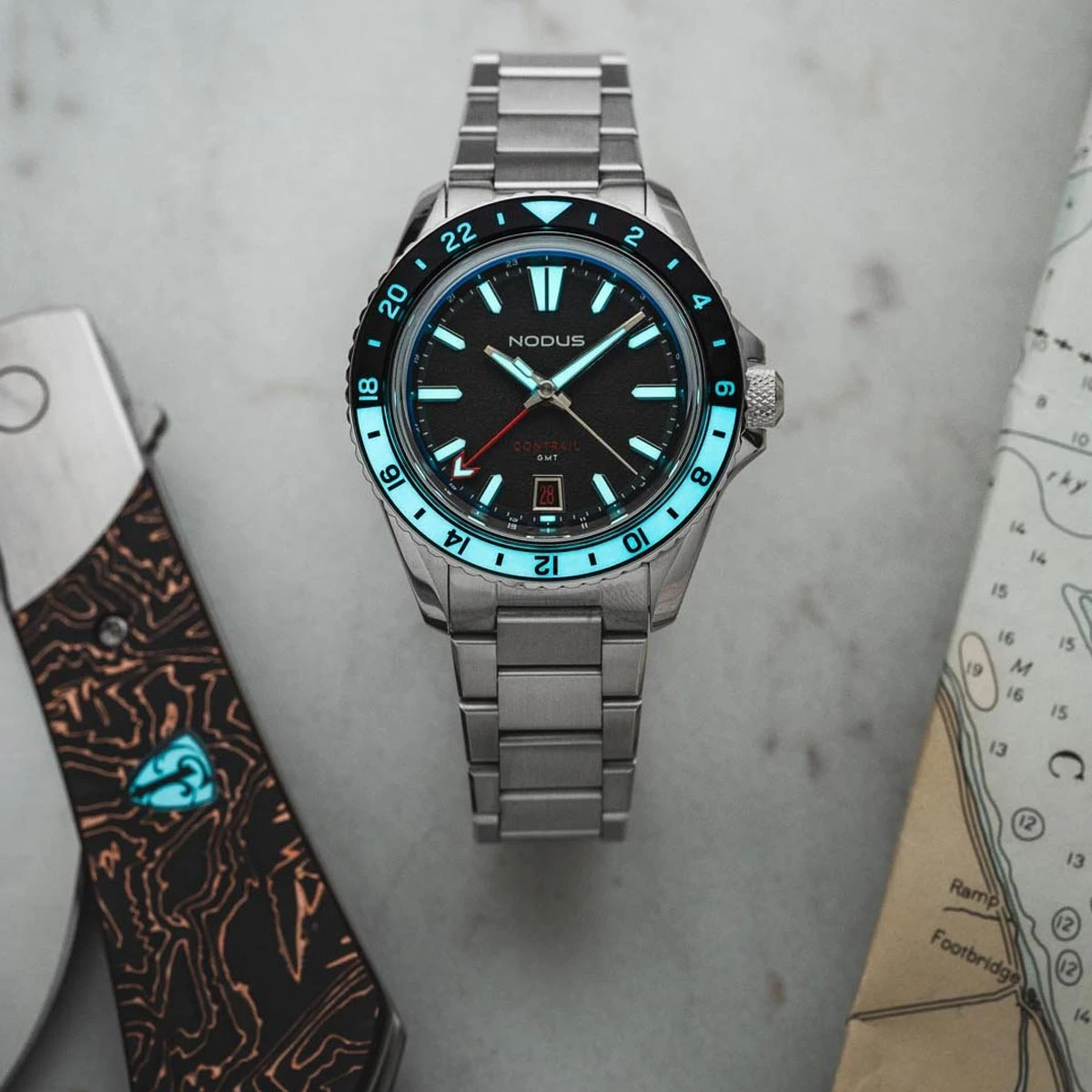 The new Contrail GMT watch takes the essence of its predecessors and elevates it with a sleek and versatile design. Leaning into our dedication to efficient design, the redesigned case offers one of the thinnest profiles for a Miyota 9075 watch on the market today. Designed for a comfortable fit on the wrist, the Contrail GMT ensures that style doesn’t compromise functionality. The hallmark features remain intact, ensuring ease of use and clear legibility at a glance. As we continue to evolve in our journey at Nodus, the Contrail GMT stands as a testament to our commitment to creating the ultimate travel companion for our global community of adventurers.