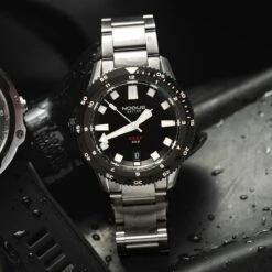 Rated for 500 meters of depth, the Sector Deep is the most function-forward Sector to date. It features a hyper-contrast dial, dual function unidirectional bezel, “destro” crown orientation, and nearly nuclear amounts of luminous material. Legibility is the name of the game as you descend to the depths.