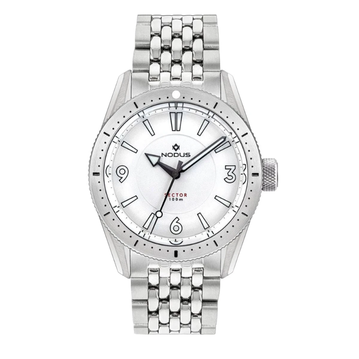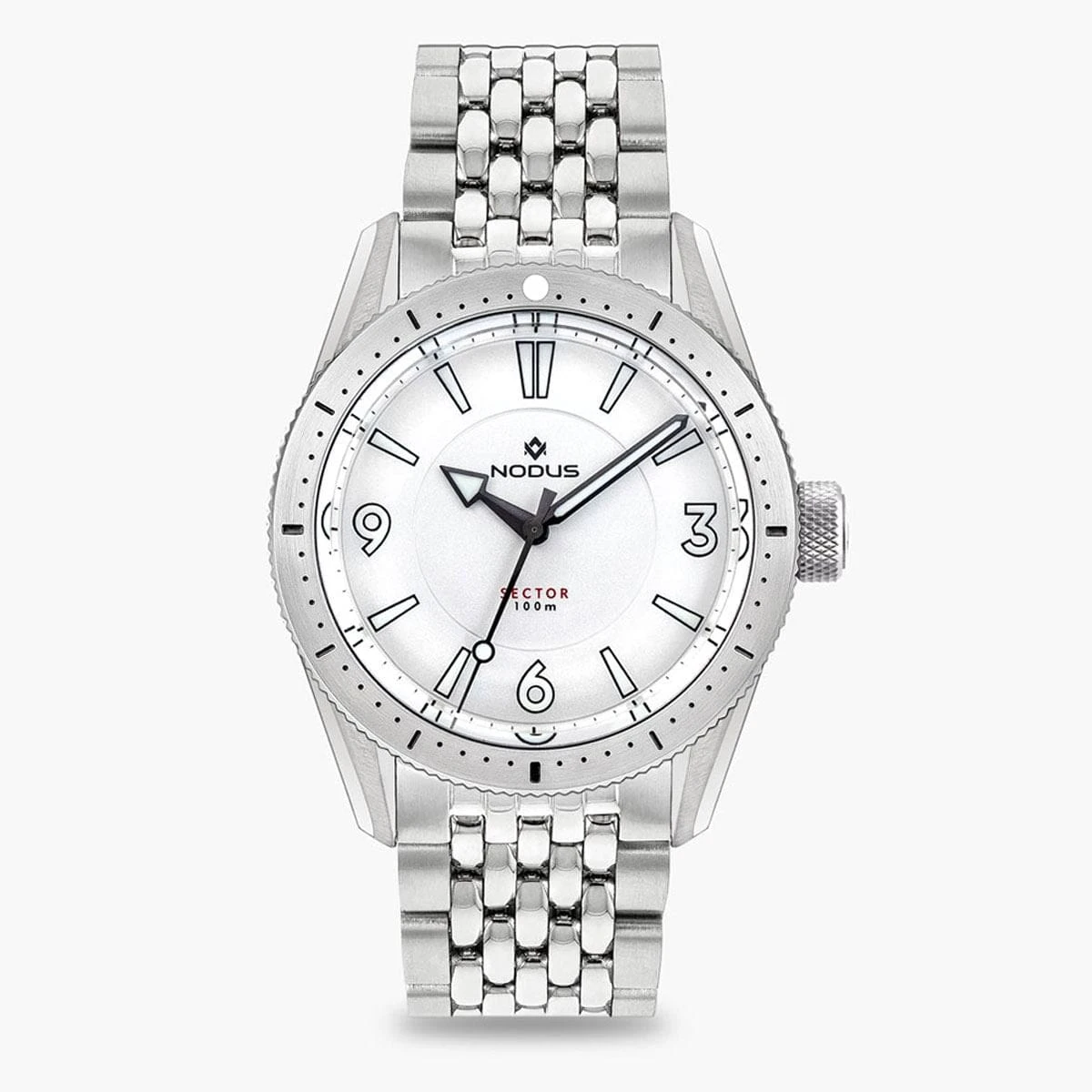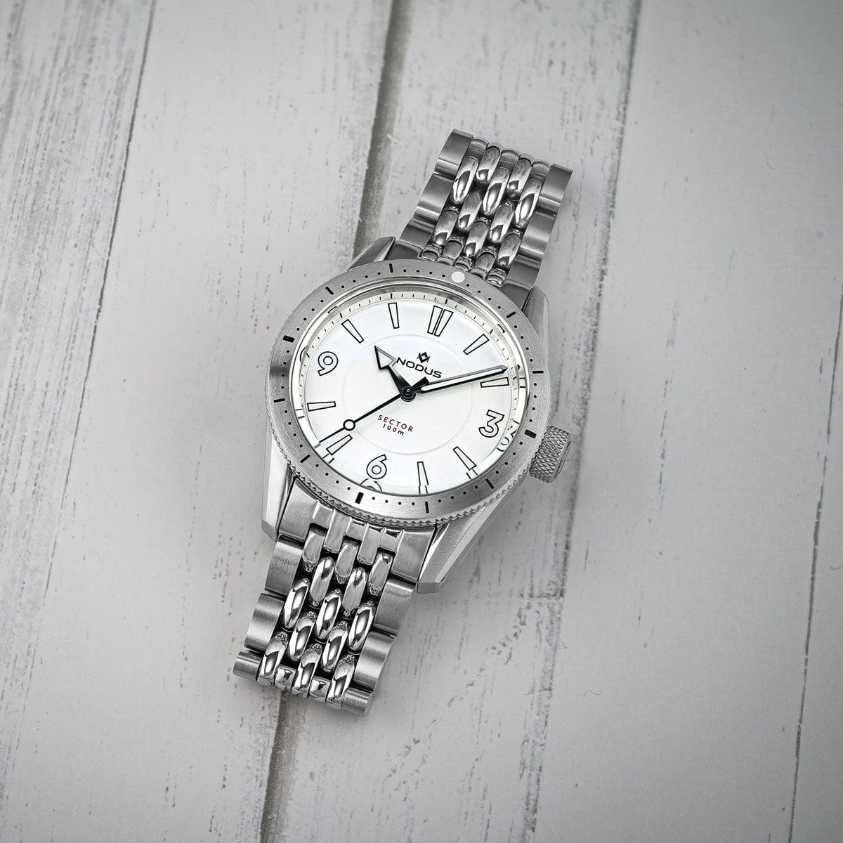 An oversized crown helps with winding the Seiko NH38 movement, providing 41 hours of power reserve. Nodus have taken the time to regulate the movement in four positions, which makes the watch accurate to +/- 10 secs/day. The Sector Dive watch also comes with a beads-of-rice strap with the engraved Nodus logo on the clasp.
