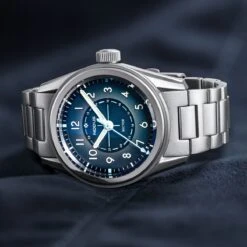 The case measures 38mm in diameter and 47mm lug-to-lug. The stepped case design is made from highly durable stainless-steel and features an engraved solid screw-down caseback for up to 150 metres of water resistance. The Sector Field watch uses a mixture of sandblasted and high-polished surfaces.