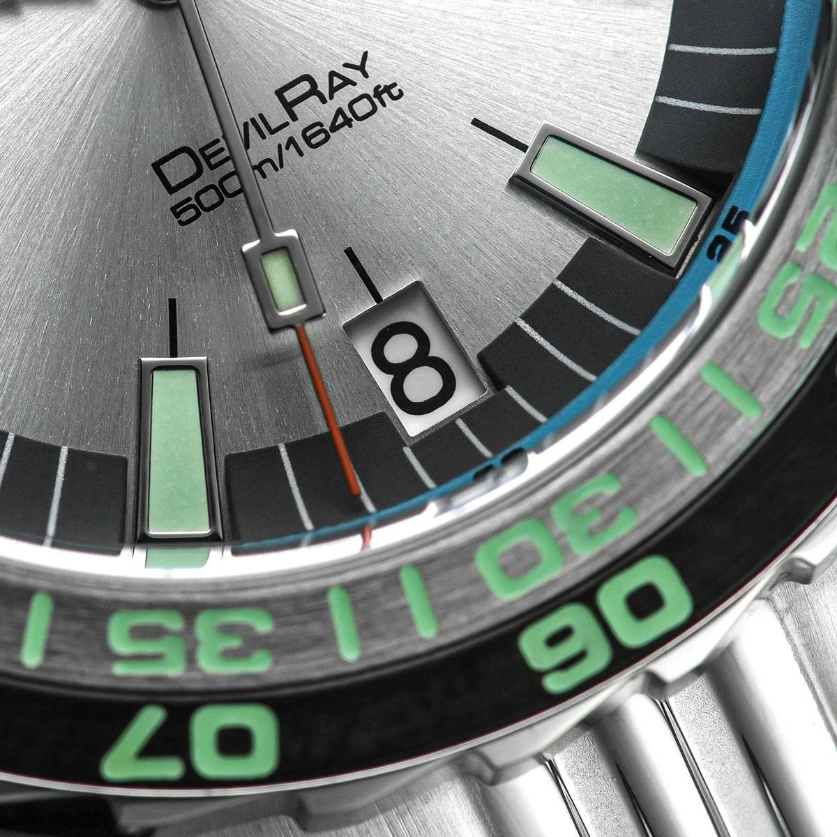 What’s more, each DevilRay is individually tested to a water resistance rating of an impressive 500m, and features a double-domed, anti-reflective sapphire crystal for superb scratch-resistance.
