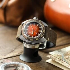 The WatchGecko V-Stitch Distressed Leather Watch Strap is the perfect match for the NTH DevilRay Vintage Orange timepiece. Crafted from top-quality Italian leather with a 4mm to 3.5mm tapering thickness, the strap offers both durability and flexibility for long-lasting wear. It has a comfortable fit and conforms perfectly to the wrist, making it a great choice for those looking for a timeless and simple design that perfectly complements the vintage style of WatchGecko’s exclusive vintage orange DevilRays design.