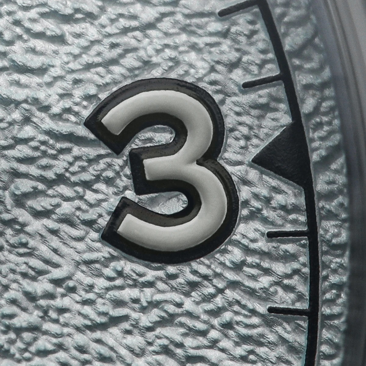 Not only are the hour-markers equipped with BGW9 Super Luminova but it also accompanies the sword hands, the bezel pip and markers. This specific compound of luminescence remains stark white in daylight contributing to the sophisticated and clean look of the dial and produces a blue glow during twilight hours when fully charged. The lume perfectly complements the overall appearance of the watch adding to the winter-inspired design.