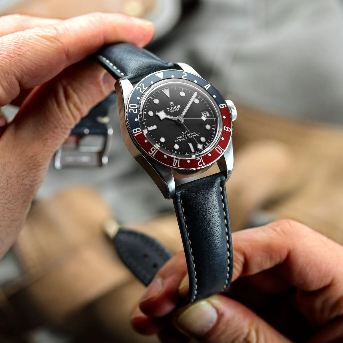 This is a generous strap in every way. It’s thickly padded (6mm thick at the lug end) and made from the very best Italian vegetable-tanned, full-grain leather. The supple pull-up leather is oiled and will age with grace, picking up patina as it’s worn.
