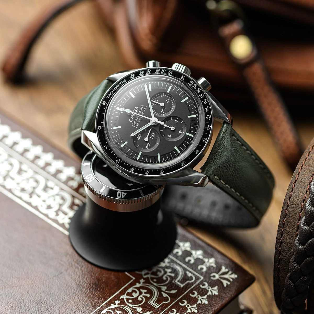This is a generous strap in every way. It’s thickly padded (6mm thick at the lug end) and made from the very best Italian vegetable-tanned, full-grain leather. The supple pull-up leather is oiled and will age with grace, picking up patina as it’s worn.