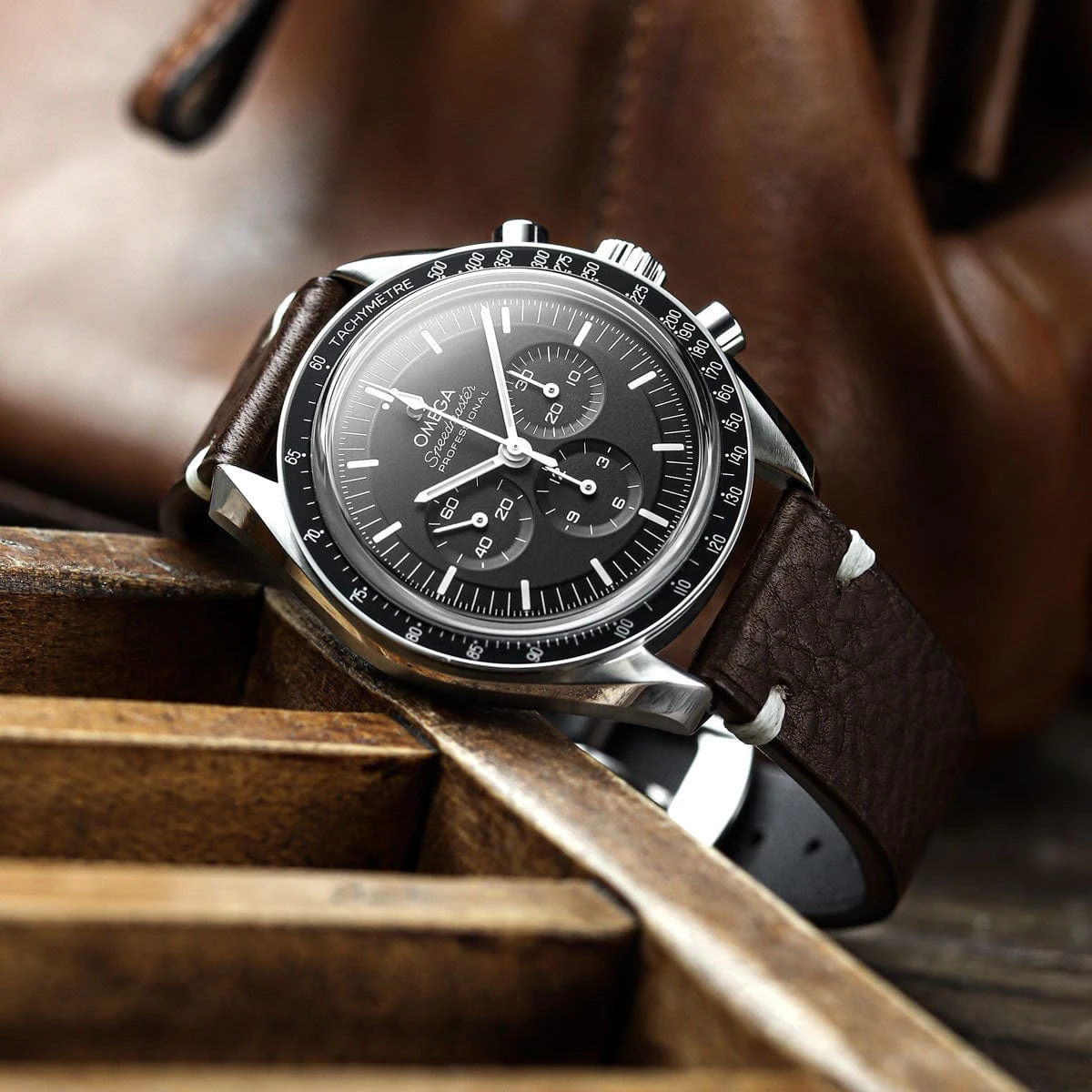 The Overton Vintage V-Stitch strap collection features a variety of premium Minerva Box leather and suede leather watch straps. The Minerva Box leather straps use vegetable tanned calf leather from the Badalassi Carlo tannery in Italy, producing an incredibly smooth and supple strap.