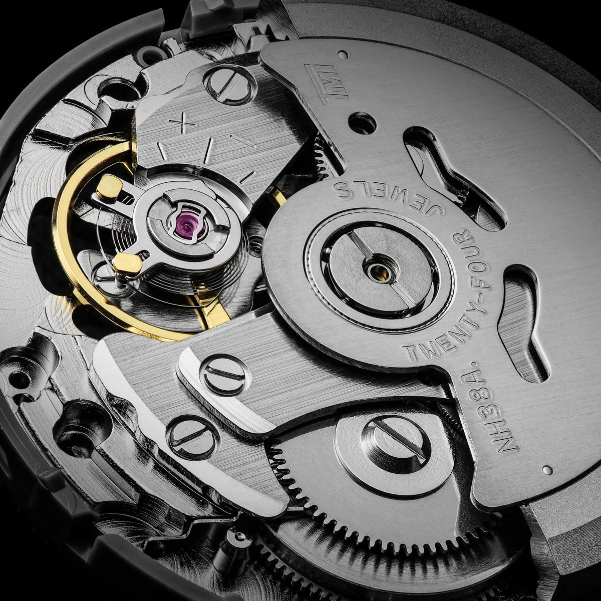 - Mechanical movement: Automatic winding TMI NH38 time-only movement.