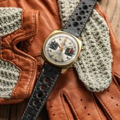 A fantastic vintage style racing watch strap made from vegetable-tanned top grain calf leather, made by hand at our partner’s workshop in Valencia, Spain.