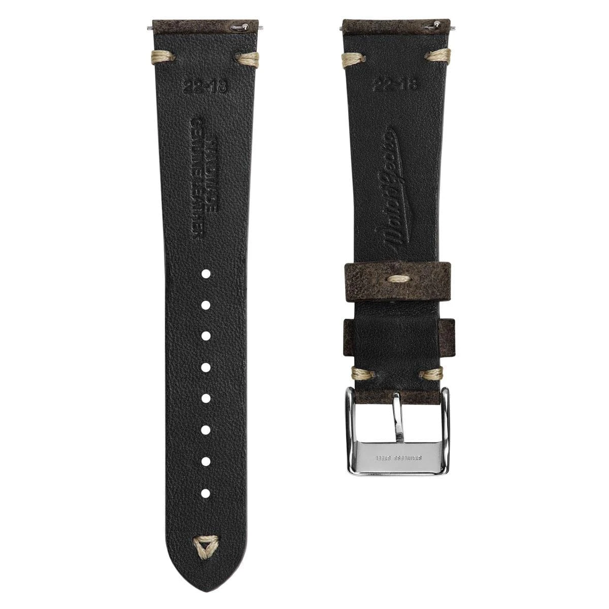 Our V-Stitch Distressed Leather Watch Strap offers timeless simplicity, making it a popular choice for anyone after a quality leather strap. With a 4mm to 3.5mm tapering thickness the Italian leather is able to stand up to a great deal of wear, whilst still being pliable from the outset and it conforms well to the wrist.