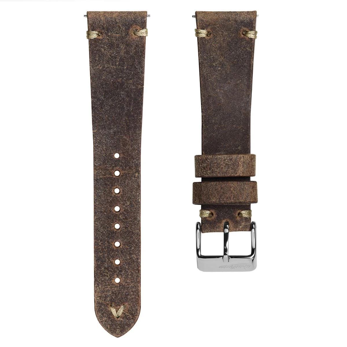 Our V-Stitch Distressed Leather Watch Strap offers timeless simplicity, making it a popular choice for anyone after a quality leather strap. With a 4mm to 3.5mm tapering thickness the Italian leather is able to stand up to a great deal of wear, whilst still being pliable from the outset and it conforms well to the wrist.
