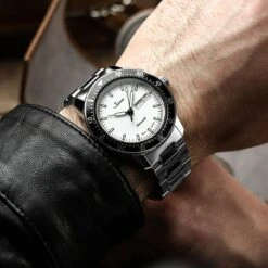 - A contemporary design with luminous hands and indices and a captive pilot’s bezel.