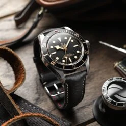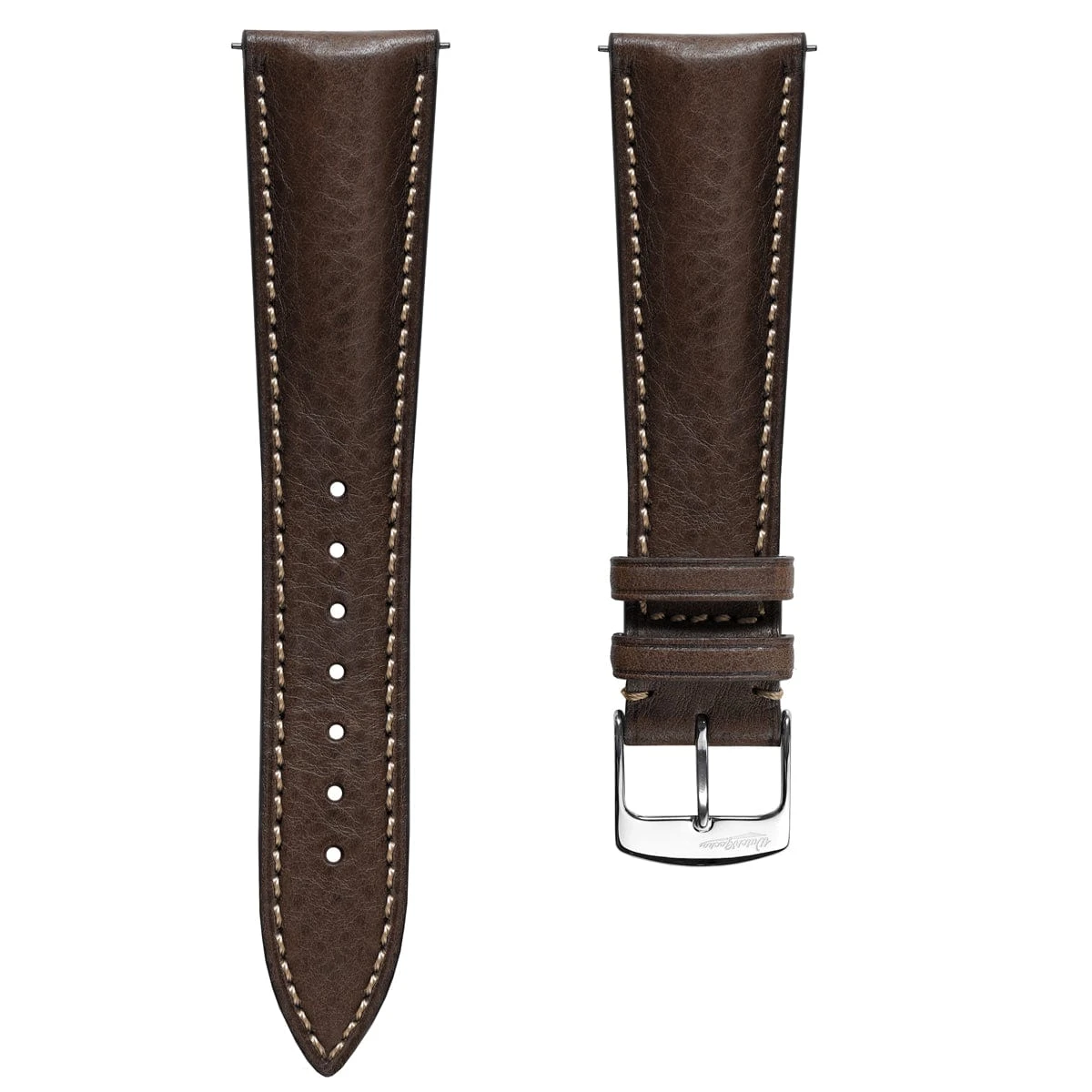 The Stanton padded leather straps are made from Minerva Box leather sourced from the renowned Badalassi Carlo tannery in Tuscany, Italy. Minerva Box leather is a tumbled vegetable-tanned leather which has a natural grain. This means that the texture of the leather will vary slightly from strap to strap. Overall, Minerva Box is one of the best vegetable-tanned leathers in the world, and it makes for a supple and richly coloured strap.