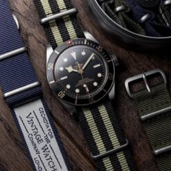 In the range, we have a new bond stripe, black/gold, for a great match for watches which have vintage yellow lume.