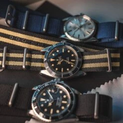 In the range, we have a new bond stripe, black/gold, for a great match for watches which have vintage yellow lume.