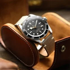 The Vintage Cavallo strap uses handmade horse leather that has been vegetable tanned with leaves and olive tree bark, achieving a beautiful and supple grain that feels very comfortable on the wrist. The tanning process also gives this strap the durability to last, developing a pattern as it ages.