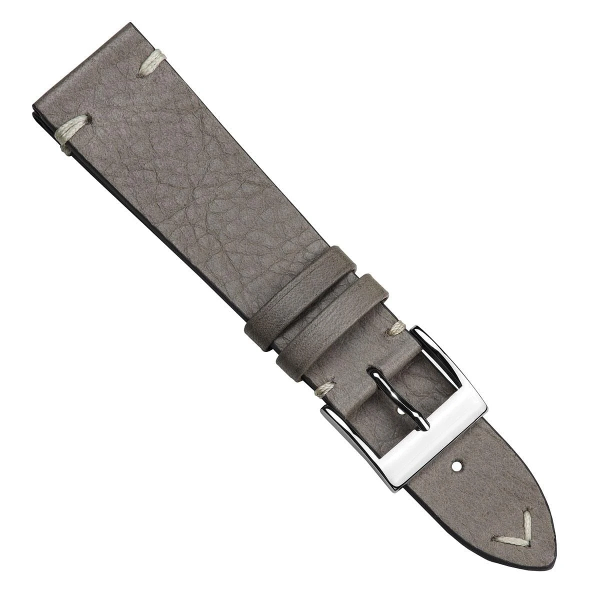 The handstitched edge of the Vintage Cavallo strap has been expertly executed using contrasting thread and hand-painted with a colour stain to match the leather. This watch strap is available in several lug widths, tapering by 2-4mm at the buckle depending on the size, and features a robust stainless-steel buckle with a highly polished finish.