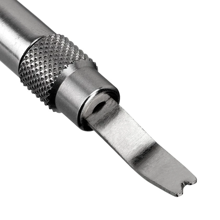 The wider width fork is great for changing leather and rubber watch straps. Whilst the fine 1.2mm fork is ideal for getting into tighter positions, like with metal watch straps where there is normally a small machine slot to access the spring bar pins, which can’t be done with some larger tools.
