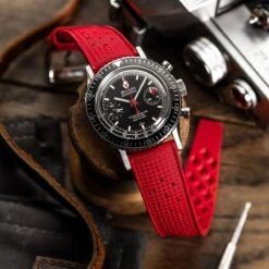 Inspired by the golden age of diving watches in the 1960s, the WatchGecko Vintage Tropical Style Strap seamlessly blends functionality and sophistication. The design pays homage to tropic straps from a bygone era with a generous tapered tail, classic style keepers, and a period accurate textured pattern. Yet it is in every way a thoroughly modern strap with hi-tec FKM rubber and quick-release spring bars.