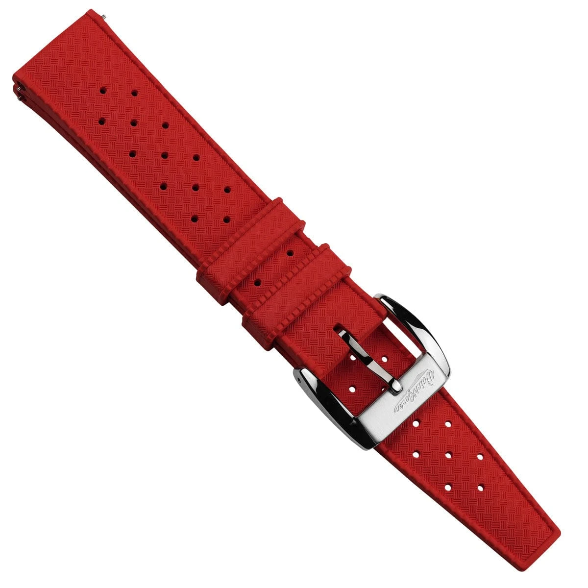 The scientific name of FKM is Fluoro-Elastomer. It is an extremely hard-wearing rubber compound highly resistant to salt water, aggressive chemicals, and extreme temperatures (as low as -45C and high as +300C). It is the perfect choice for a sophisticated rubber strap designed to be fitted to the toughest watches whilst also looking smart.