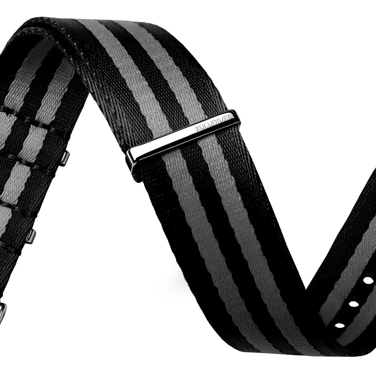 The Premium ZULUDIVER Military Herringbone design is made from high-strength seatbelt nylon webbing and fitted with premium-grade stainless steel hardware, which includes the ZULUDIVER etching on the buckle and the keeper at 6 o’clock. The nylon used in this range is silky smooth, providing a softer feel, and its reflective iridescent quality means the colours seem to change when seen from different angles.