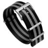 The Premium ZULUDIVER Military Herringbone design is made from high-strength seatbelt nylon webbing and fitted with premium-grade stainless steel hardware, which includes the ZULUDIVER etching on the buckle and the keeper at 6 o’clock. The nylon used in this range is silky smooth, providing a softer feel, and its reflective iridescent quality means the colours seem to change when seen from different angles.
