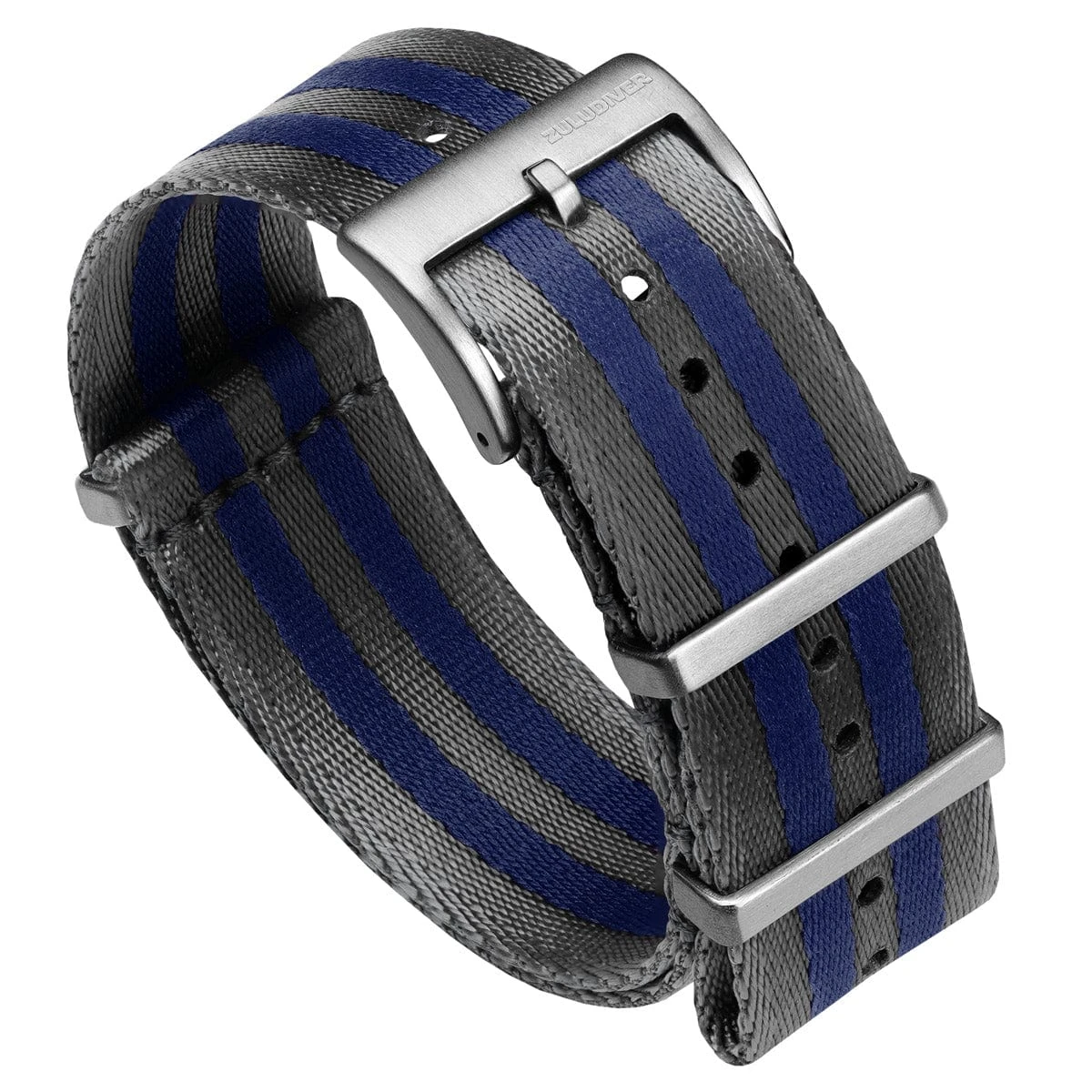 The Premium ZULUDIVER Military Herringbone design is made from high-strength seatbelt nylon webbing and fitted with premium-grade stainless steel hardware, which includes the ZULUDIVER etching on the buckle and the keeper at 6 o’clock. The nylon used in this range is silky smooth, providing a softer feel, and its reflective iridescent quality means the colours seem to change when seen from different angles.