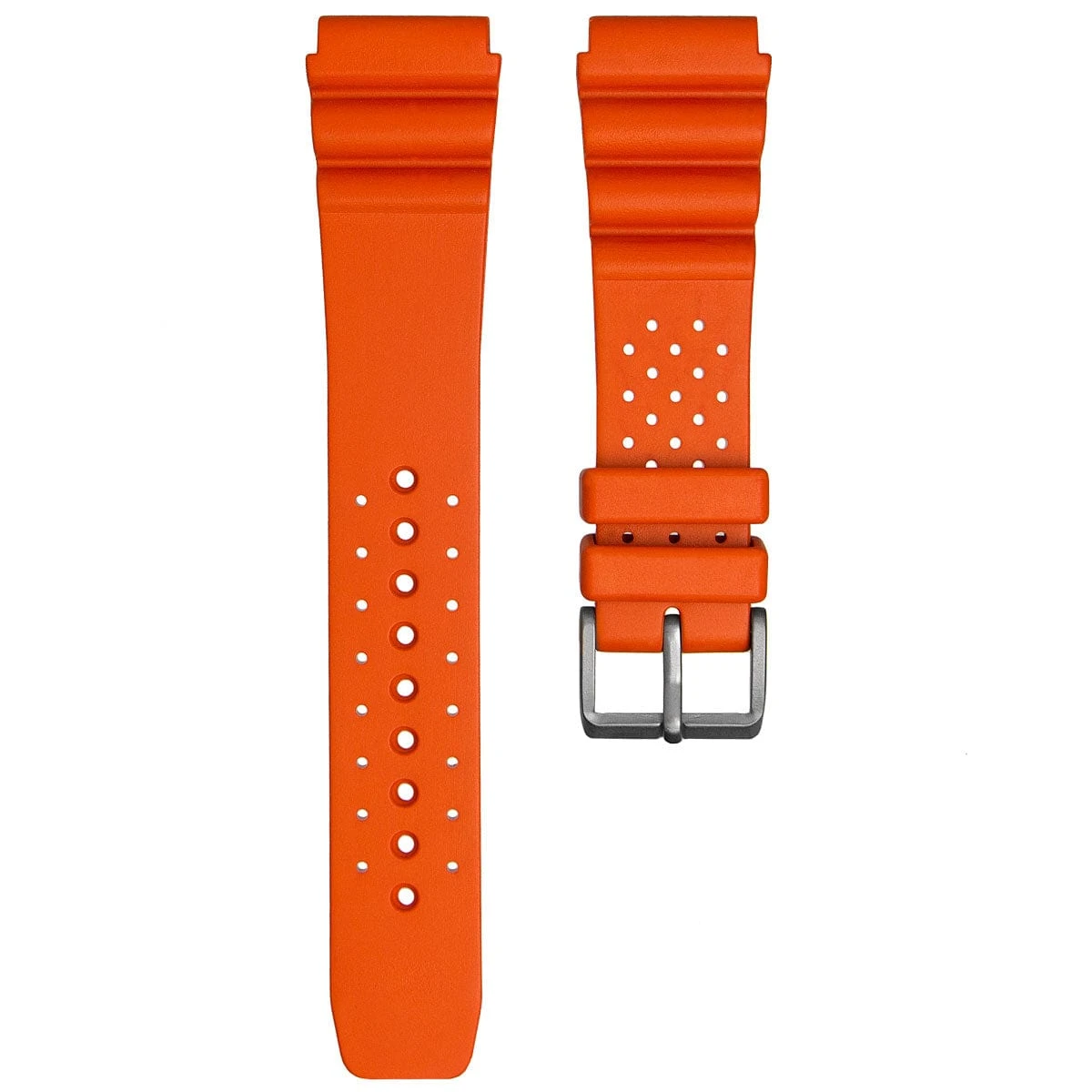 This is a high performance, durable rubber watch strap made to work and play hard. From tang buckle to slightly squared-off strap tip, it’s a worthy companion for affordable or luxury dive watches alike.
