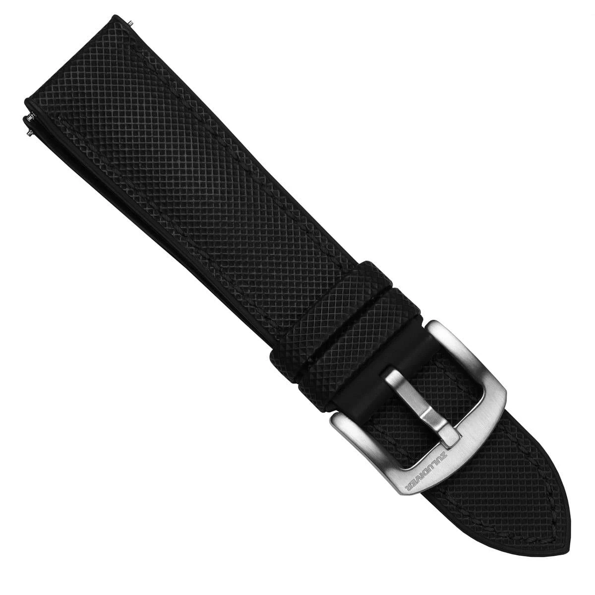 The ZULUDIVER Anvil rubber watch strap reimagines the classic design of the dive strap. The design features distinctive grooves for air circulation and comfort, making the Anvil the ideal watch strap on hot days. Made from FKM rubber, the ZULUDIVER Anvil is an incredibly durable strap, able to withstand any harsh conditions you throw at it. This strap benefits from tear-proof properties and resistance to saltwater, UV and sweat.