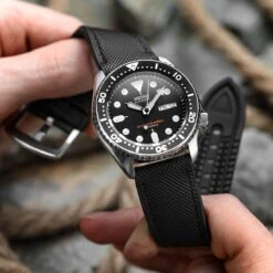 The ZULUDIVER Anvil rubber watch strap reimagines the classic design of the dive strap. The design features distinctive grooves for air circulation and comfort, making the Anvil the ideal watch strap on hot days. Made from FKM rubber, the ZULUDIVER Anvil is an incredibly durable strap, able to withstand any harsh conditions you throw at it. This strap benefits from tear-proof properties and resistance to saltwater, UV and sweat.
