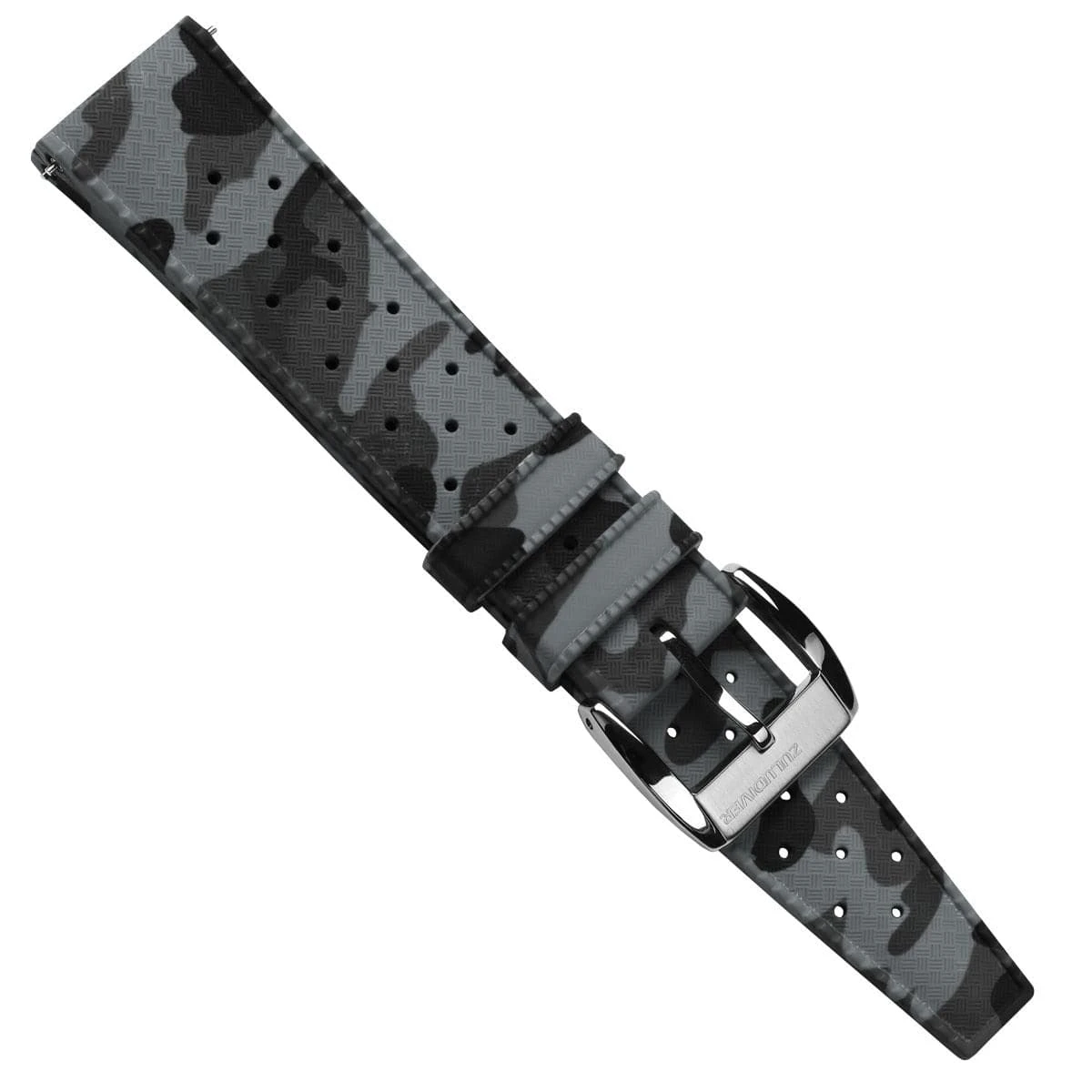 The ZULUDIVER Tropical FKM Rubber Watch Strap in the bold Camouflage design. This strap pays tribute to the military era and embodies the vintage tropic straps of the past, combined with modern hi-tech features.