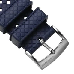 The scientific name of FKM is Fluoro-Elastomer. It is an extremely hard-wearing rubber compound highly resistant to salt water, aggressive chemicals, and extreme temperatures (as low as -45C and high as +300C). It is the perfect choice for a sophisticated rubber strap designed to be fitted to the toughest watches whilst also looking smart.