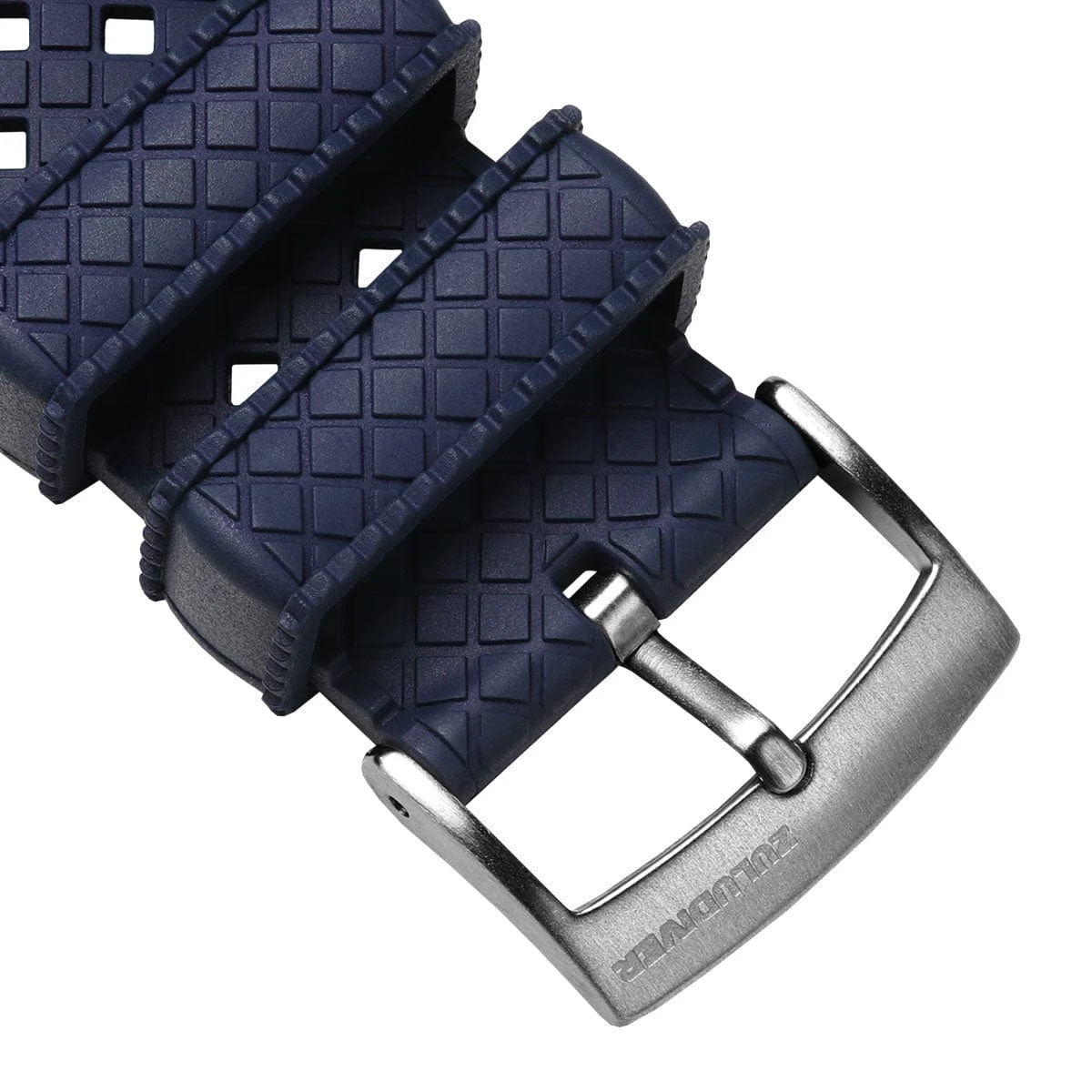 The ZULUDIVER Tropical Ocean strap adds a twist on the classic tropic-style dive watch strap. Its surface has a bold diamond pattern that’s not dissimilar to a tyre tread. This extra texture adds some great detailing to whatever watch you put it on.