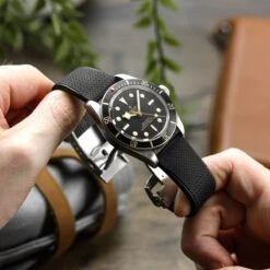 HNBR rubber is made to endure extreme climatic conditions, such as salt water and UV radiation, making it the perfect material to suit your diver’s watch. The rubber is also incredibly strong, flexible, and comfortable to wear.